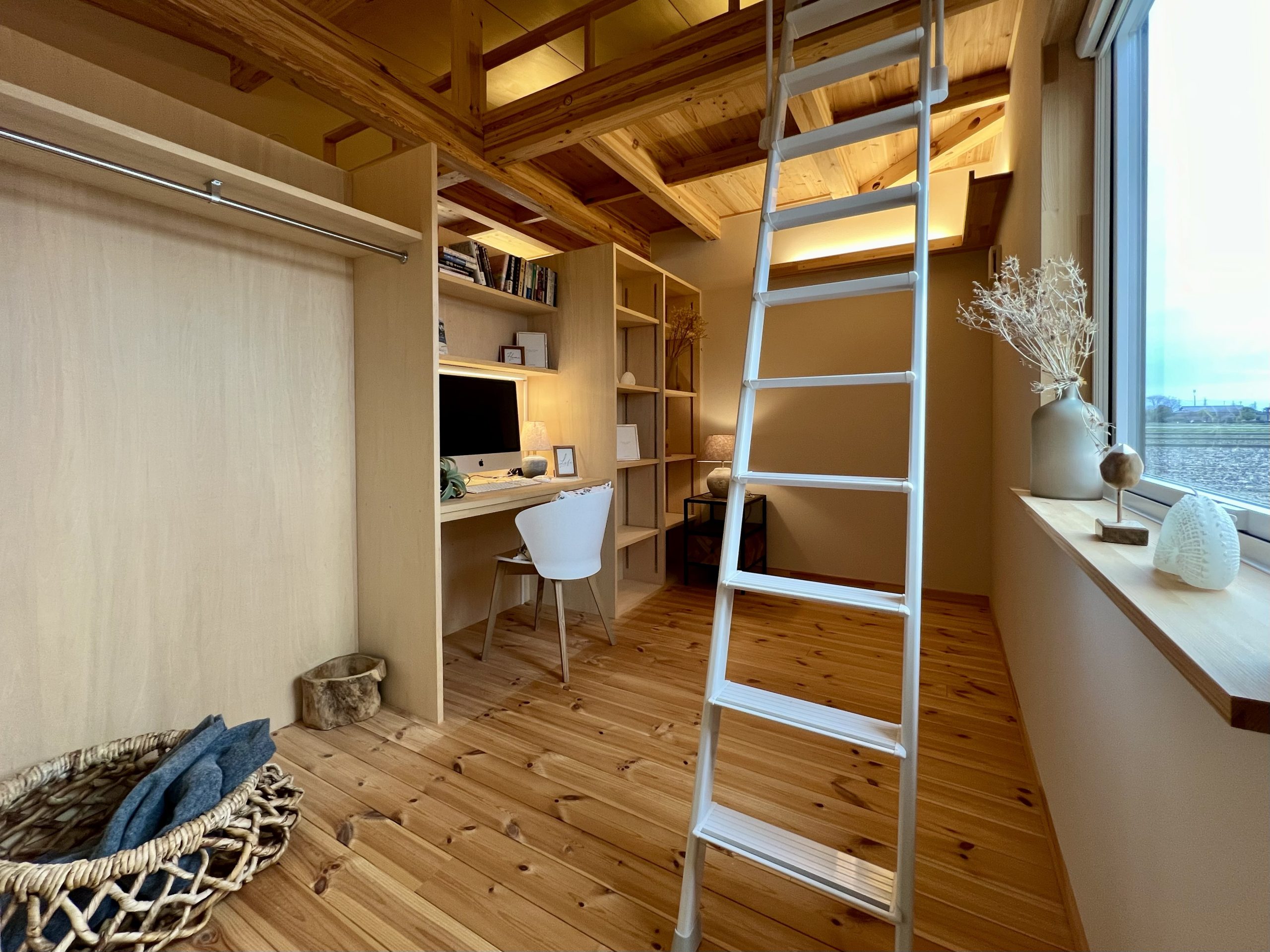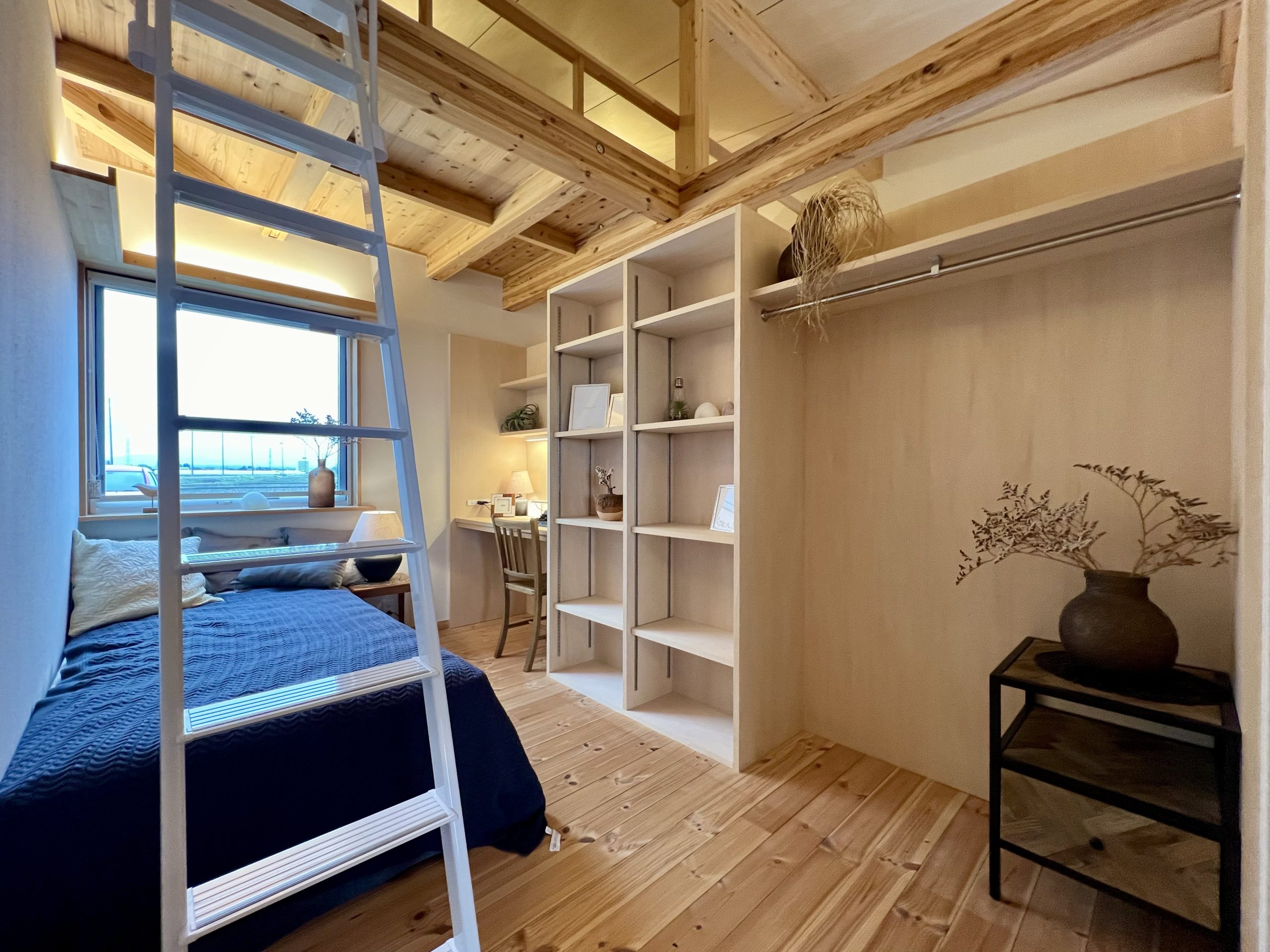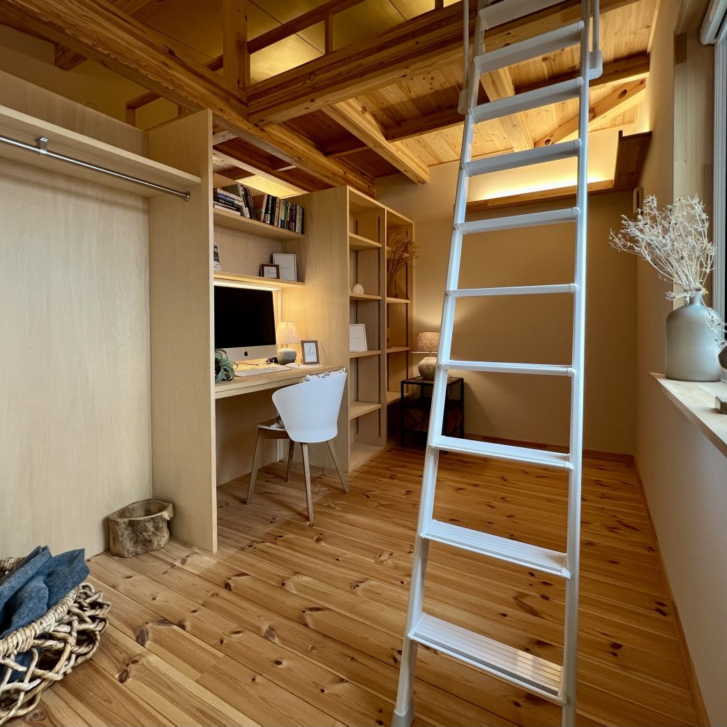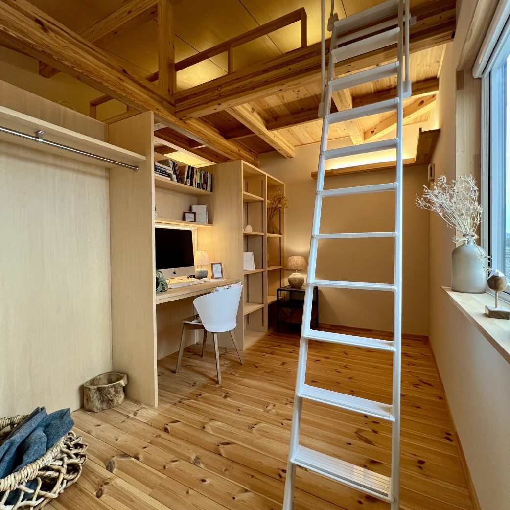 ロフトはただの収納スペースではなく、 趣味を楽しむワークスペース や 遊びの場 として活躍。LDKや寝室とつながる立体的な空間設計により、家全体に奥行きと心地よい開放感が生まれています。さらに、ワンフロアで生活動線を完結させながらも、ロフトという “もうひとつの居場所” があることで、家族それぞれの時間を大切にできる住まいです。
