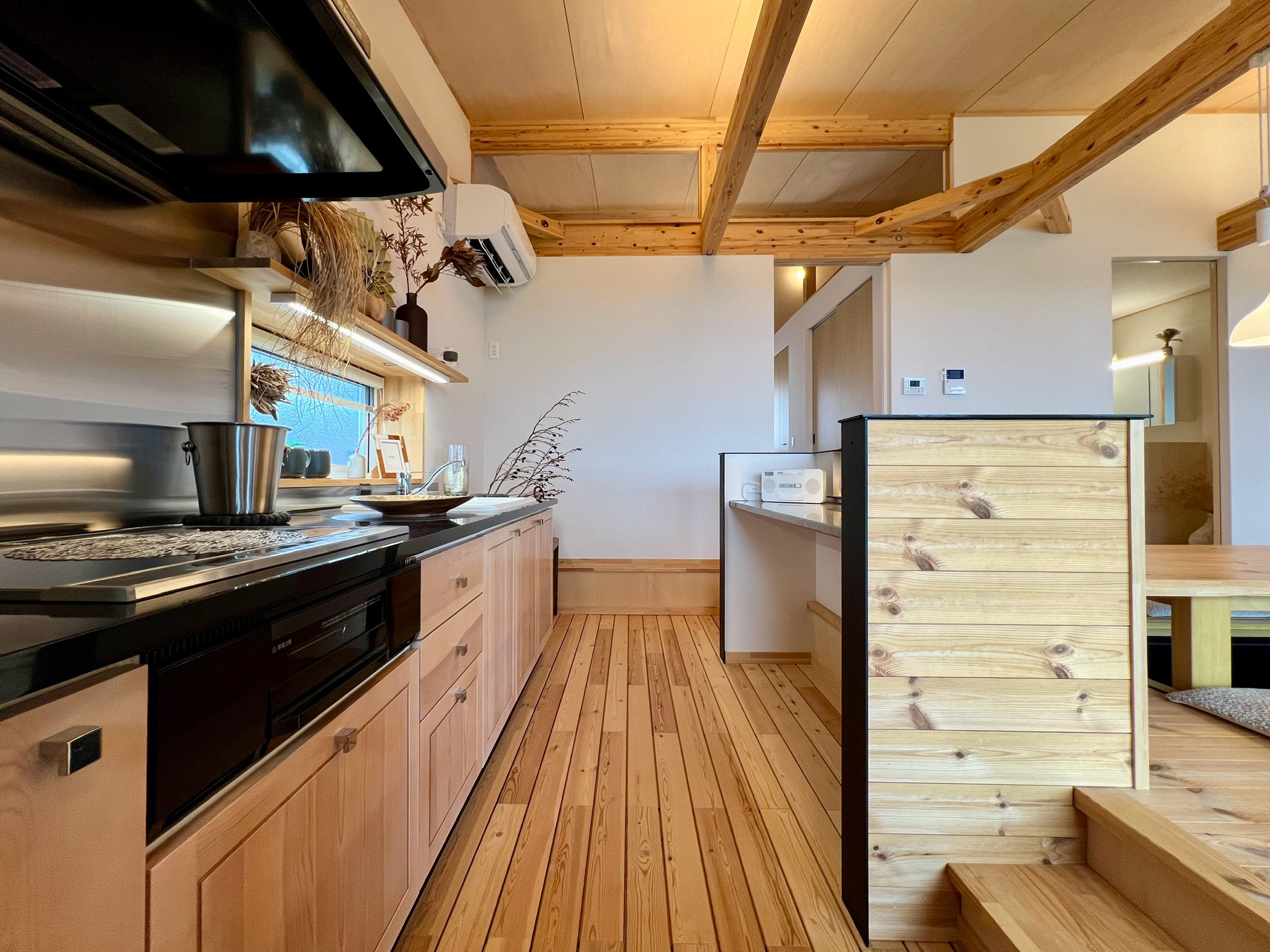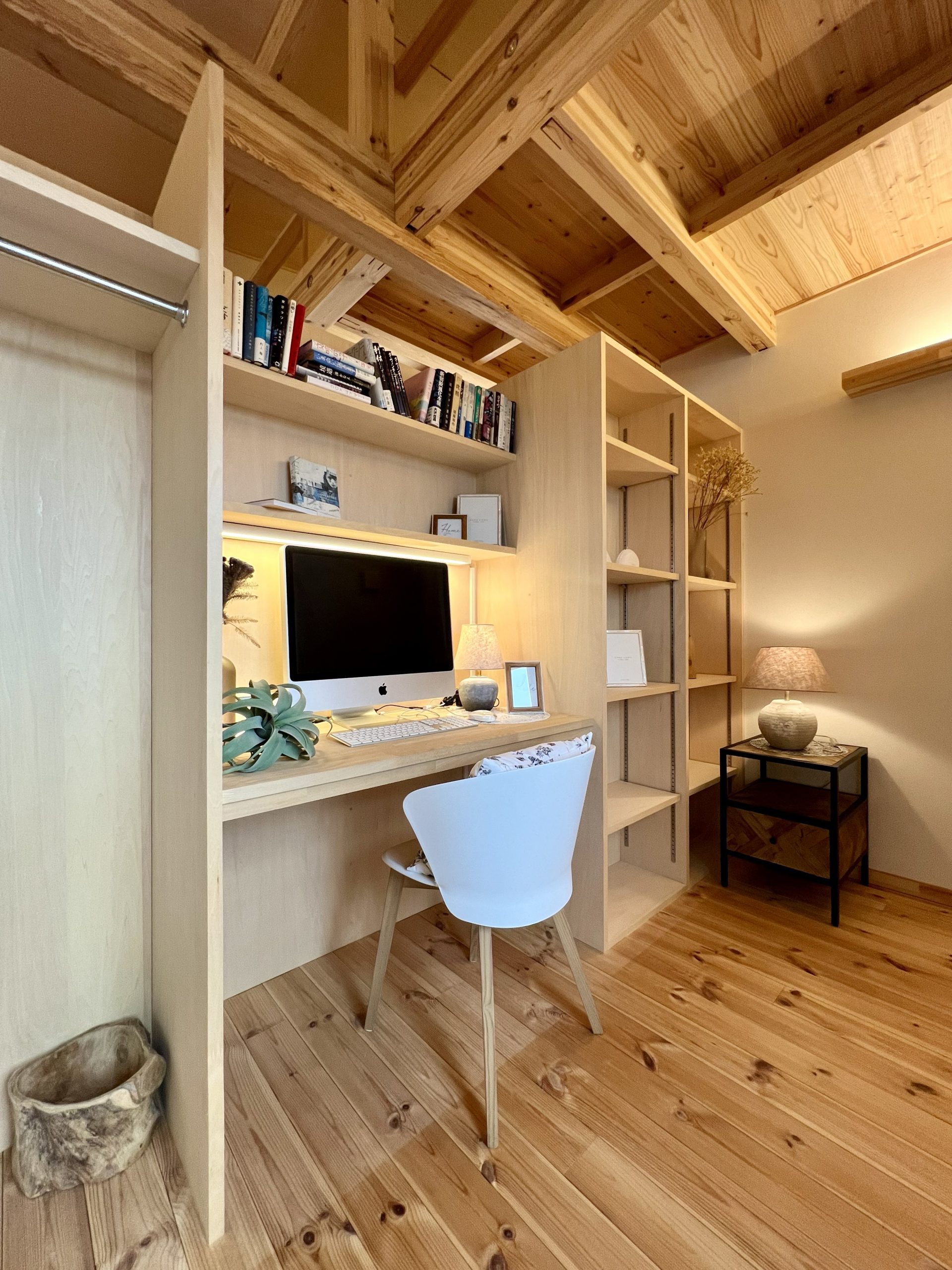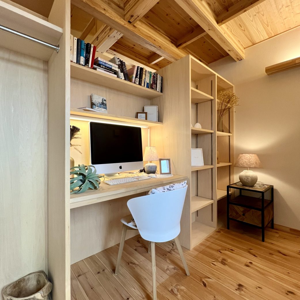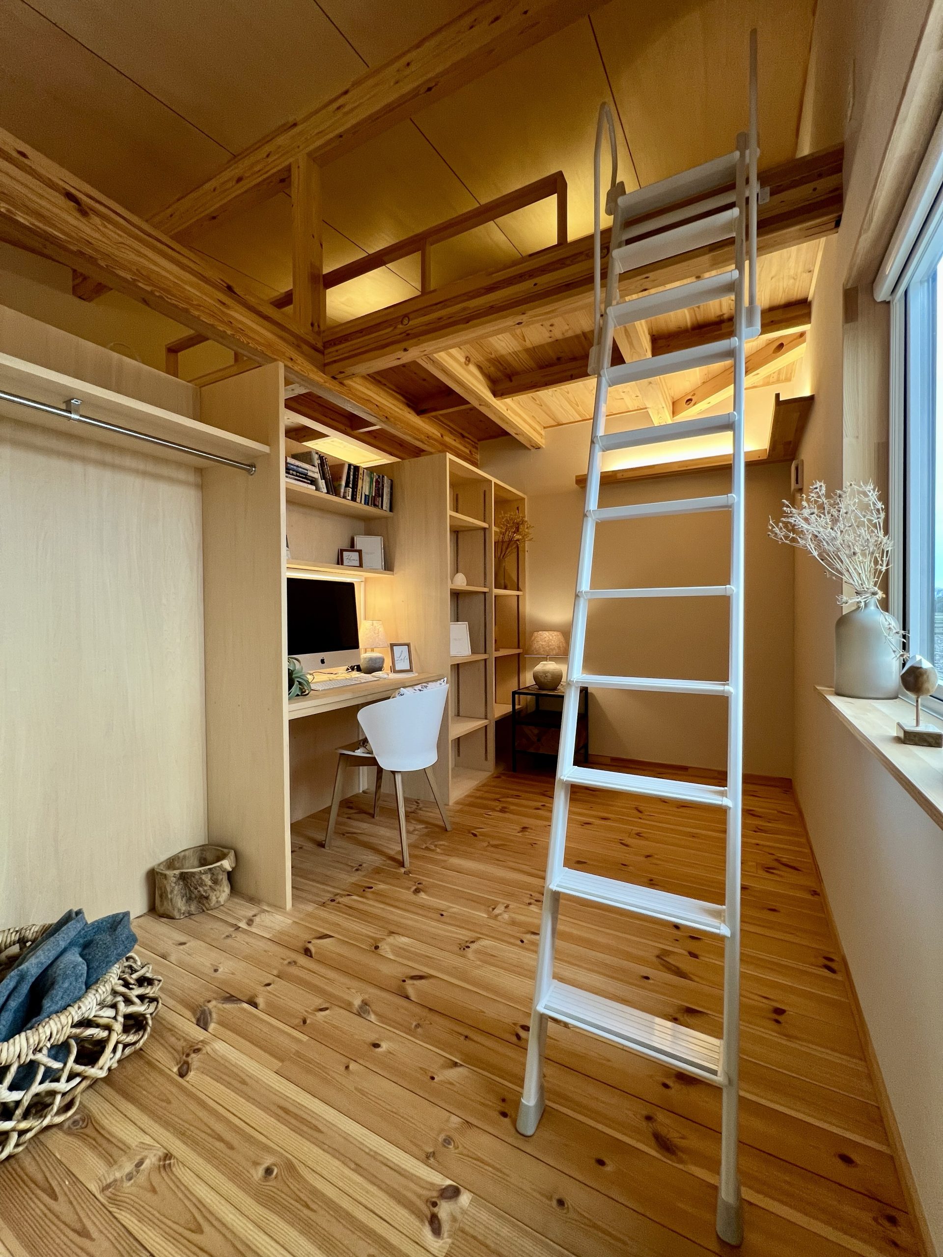 ロフトはただの収納スペースではなく、 趣味を楽しむワークスペース や 遊びの場 として活躍。LDKや寝室とつながる立体的な空間設計により、家全体に奥行きと心地よい開放感が生まれています。さらに、ワンフロアで生活動線を完結させながらも、ロフトという “もうひとつの居場所” があることで、家族それぞれの時間を大切にできる住まいです。